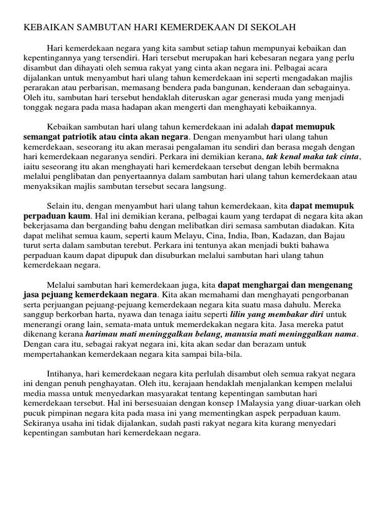 Kebaikan Sambutan Hari Kemerdekaan Di Sekolah Pdf